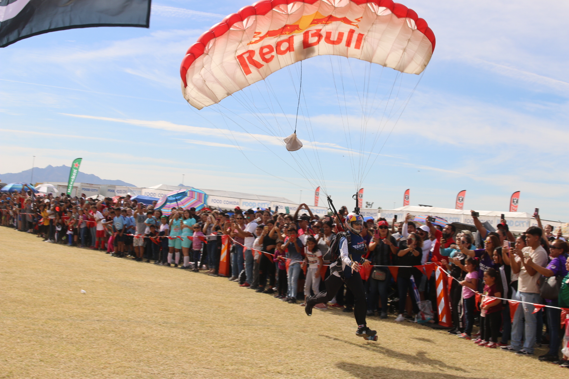 El balón oficial de la Copa Food City llegó desde los aires traído por los paracaidistas de Red Bull.