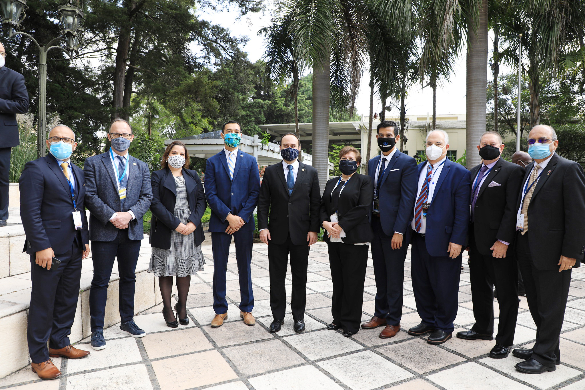 En el segundo momento, se integró el canciller Pedro Brolo, quien dio la bienvenida a todos los integrantes de la misión y les agradeció por su interés en Guatemala y en la confianza que otorgan a los esfuerzos que el Gobierno del presidente Alejandro Giammattei realiza por promover la inversión, el comercio y el turismo.