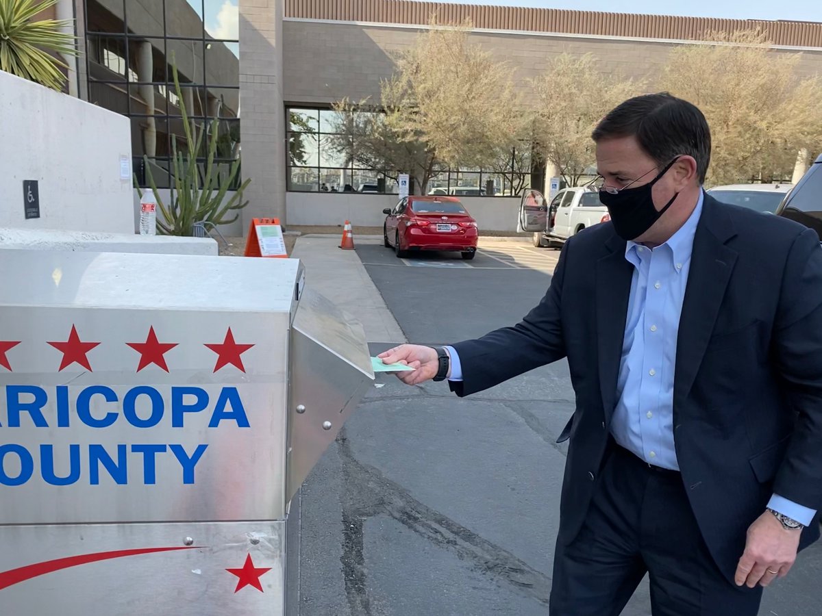 En esta foto de archivo, el gobernador Doug Ducey depositando su voto en el buzón apostado en la Oficina de Elecciones del Condado de Maricopa.