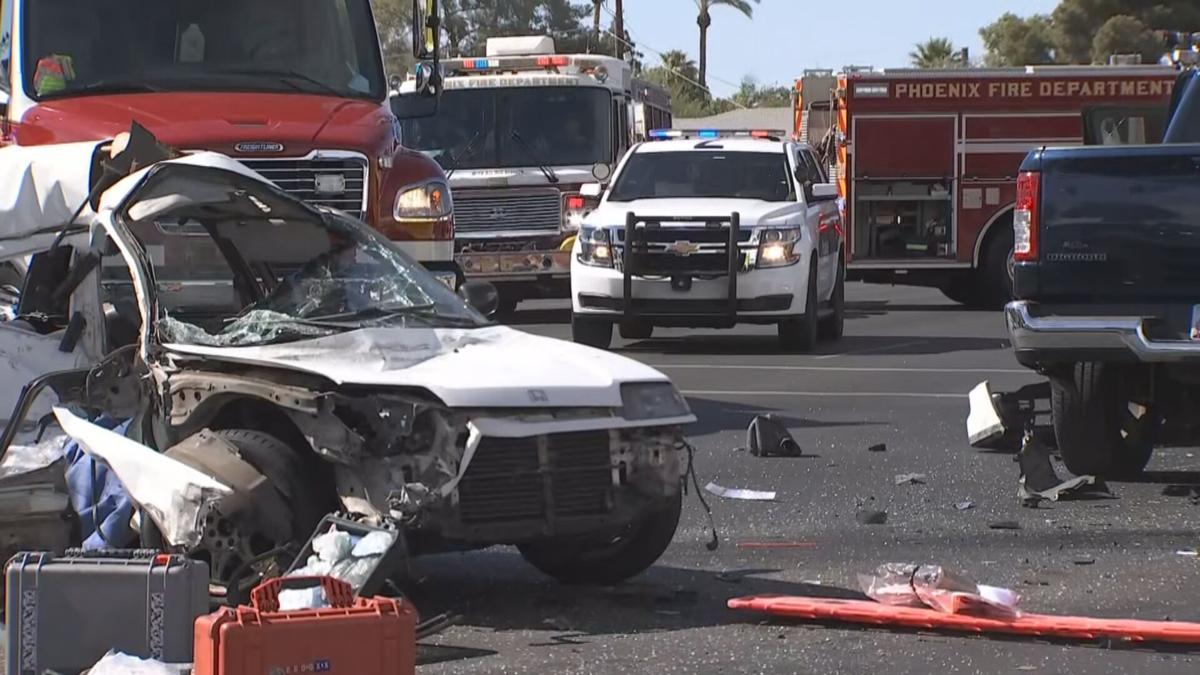 La fuerza de ese choque provocó una reacción en cadena, golpeando una camioneta Dodge Ram que tenía un padre y su hijo de 5 años adentro. Luego, la camioneta fue empujada hacia un autobús de la ciudad de Phoenix. Nadie en el autobús resultó herido.