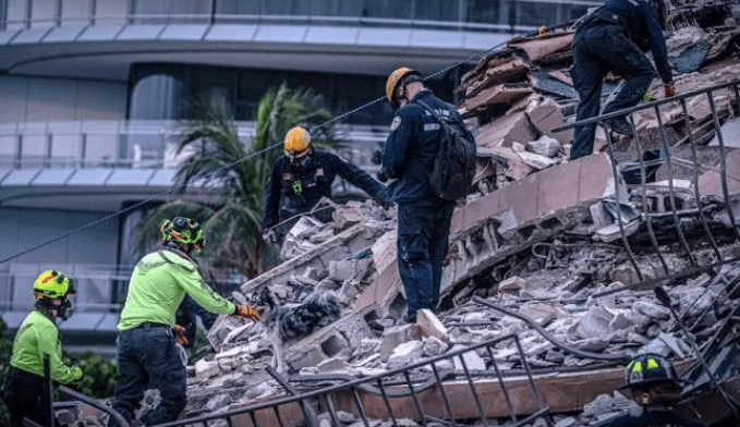 Desde que en la madrugada del jueves 24 se desplomó parte del edificio Champlain Towers, con 136 apartamentos y en primera línea de playa en Surfside, al norte de Miami Beach, el equipo de rescate no ha interrumpido la búsqueda.