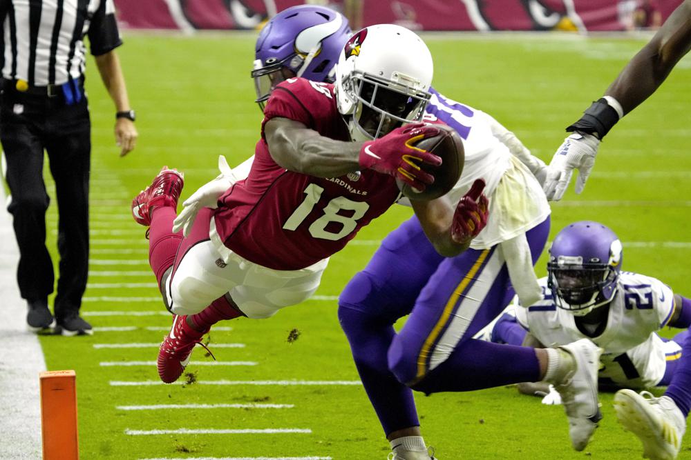 DeAndre Hopkins atrapó un pase de touchdown para los Cardinals. Osborn lideró a los Vikings con 91 yardas recibiendo.