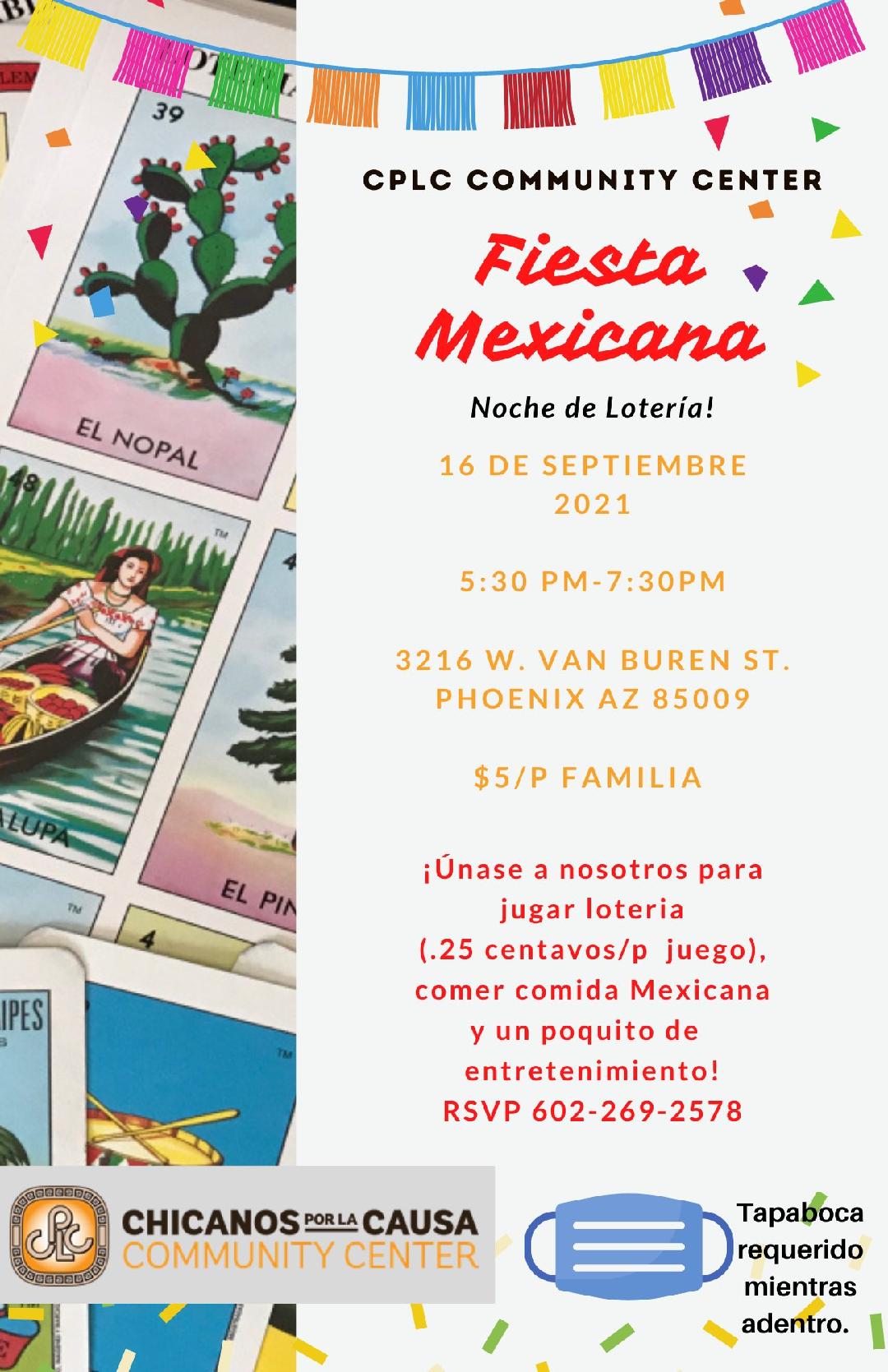 El jueves 16 de septiembre de 5:30 p. m. A 7:30 p. m., nuestros clientes celebrarán el Mes de la Herencia Hispana jugando a la lotería (juego de cartas tradicional que se juega en América Latina) y haciendo tostadas (tortillas planas y duras con carne deshebrada y lechuga / tomates) en nuestro Centro Comunitario.