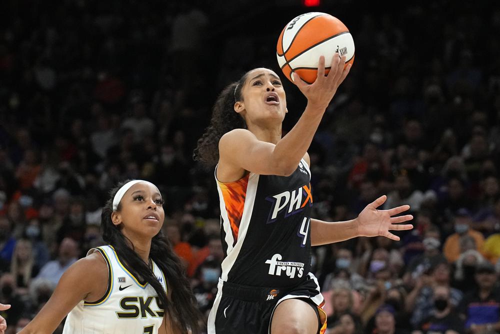 Phoenix fue a Griner temprano y con frecuencia. La pívot de 6’9 pies entregó un mate temprano después de que Sky la dejara inexplicablemente sola en el carril, poniendo de pie a los jugadores de los Suns, y tenía 14 puntos al medio tiempo.