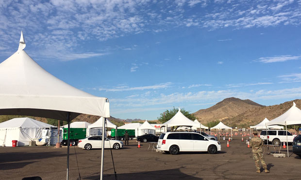 Los trabajadores en el sitio dirigieron a los que esperaban en fila al lugar de prueba cercano de Mesa Community College, que tenía poco o ningún tiempo de espera.