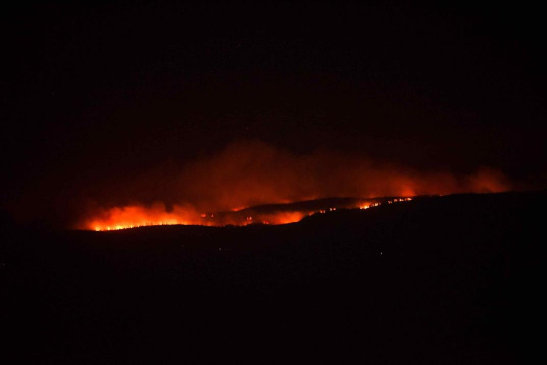 El incendio está a aproximadamente 1/4 de milla de la autopista 80 y los conductores en el área podrían ver humo. En este momento, no hay edificios amenazados por el fuego.
