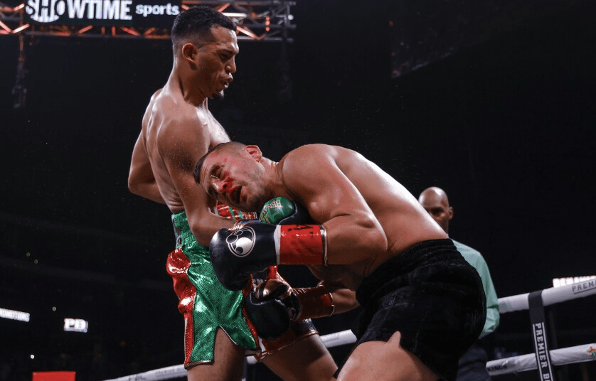 Durante el primer round, David Benavidez le mostró el poder de sus puños a Lemiux mandándolo a la lona y luego castigándolo hasta que la campana lo rescató de ser noqueado.