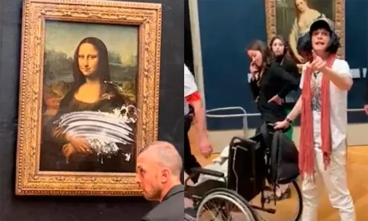 n sujeto que ingresó al museo del Louvre, en una silla de ruedas lanzó este domingo un pastel a la emblemática pieza del recinto parisino: La Mona Lisa, obra del genio renacentista Leonardo da Vinci.