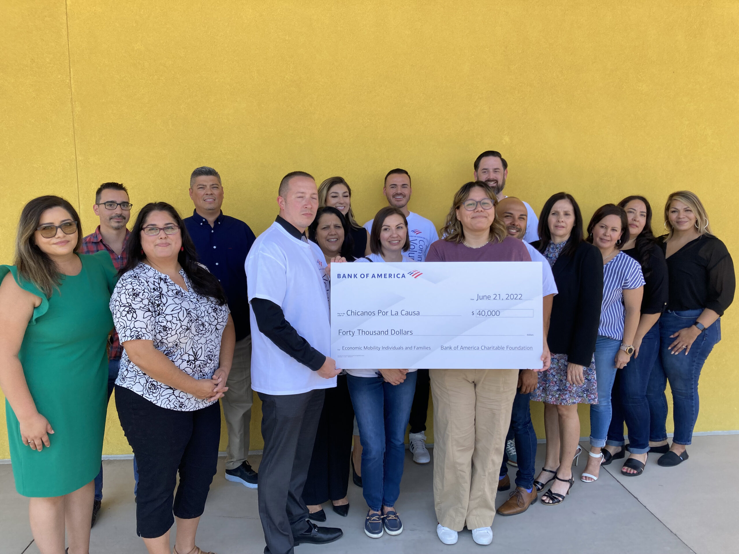 El área de apoyo a la comunidad por parte de Bank of America hizo una gran donación al departamento del área de Empoderamiento de la Familia de Chicanos Por La Causa.