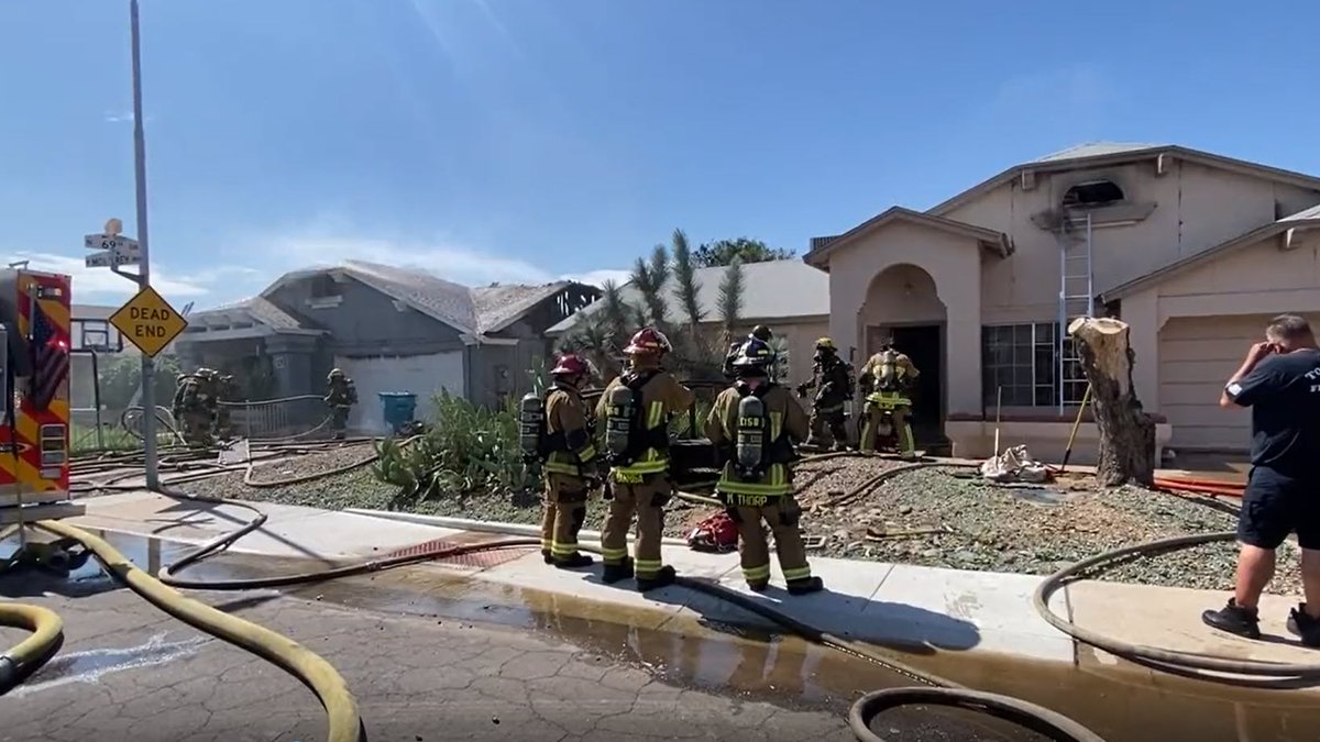 Los equipos de bomberos fueron enviados por primera vez justo después de las 9 a. m. al recibir el informe de un incendio en una casa en West Monterey Way, cerca de 67th Avenue y Thomas Road. Llegaron y encontraron dos casas en llamas.