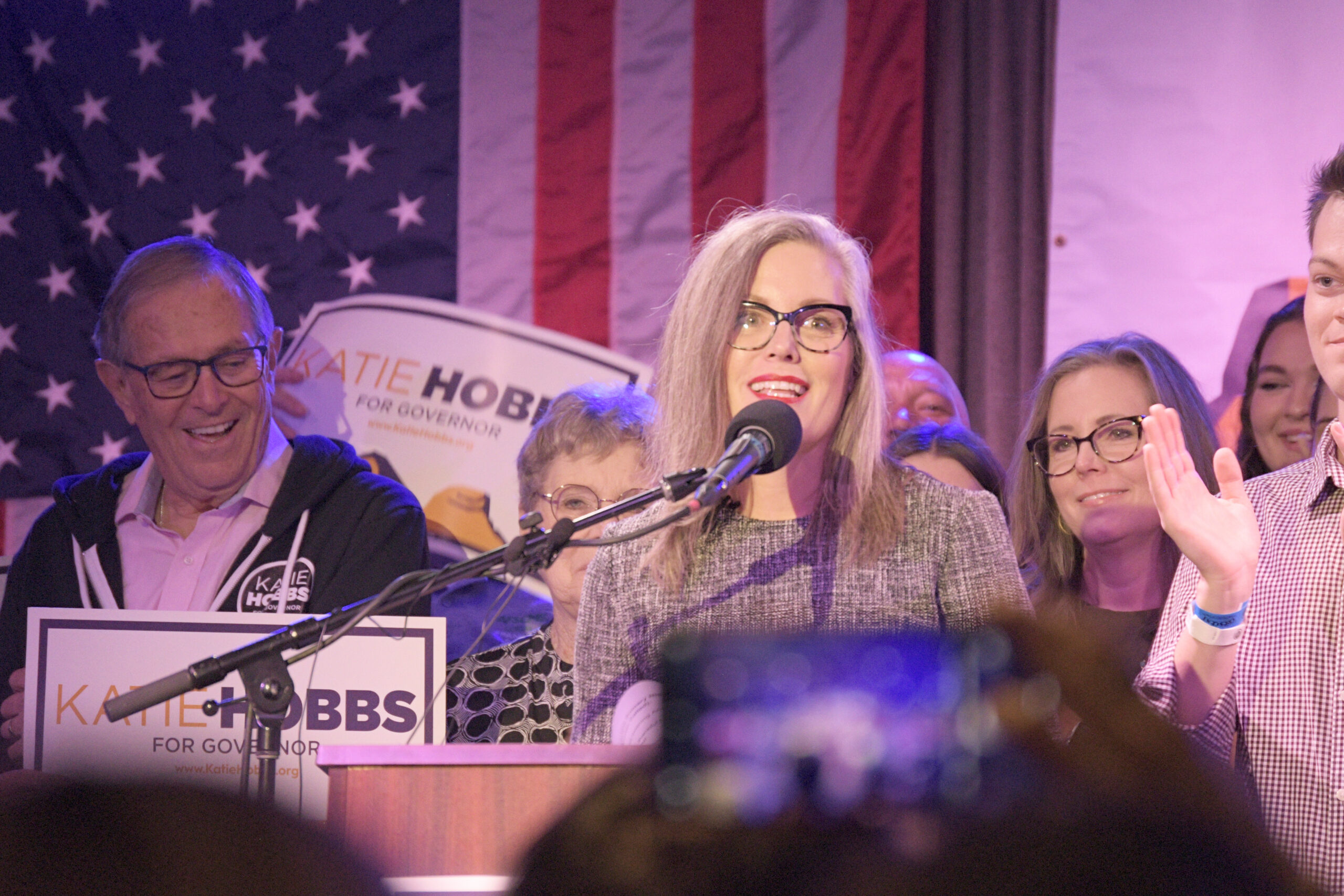 “Las personas que amenazan nuestra democracia, nuestro estado y nuestras libertades personales no solo están golpeando mi puerta, están golpeando la puerta de Arizona para apoderarse de nuestro estado y quitarnos cualquier sentido de normalidad que nos quede”, dijo Katie Hobbs, en su discurso de aceptación.