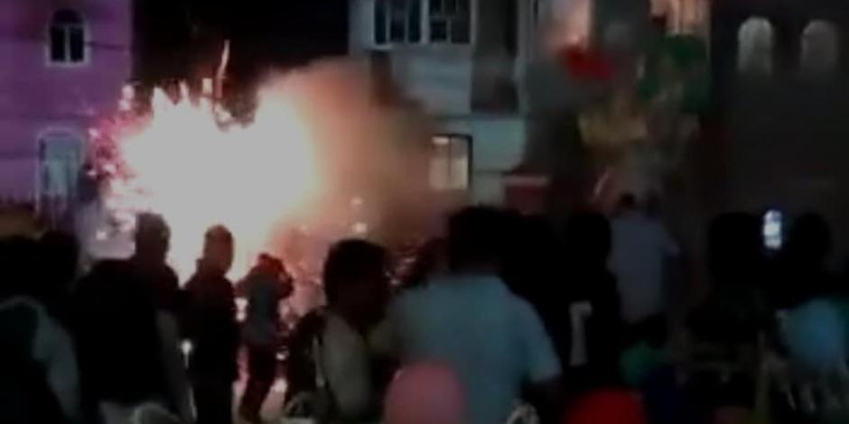 Explosión de pirotecnia en fiesta patronal de Tianguistenco deja al menos 16 heridos