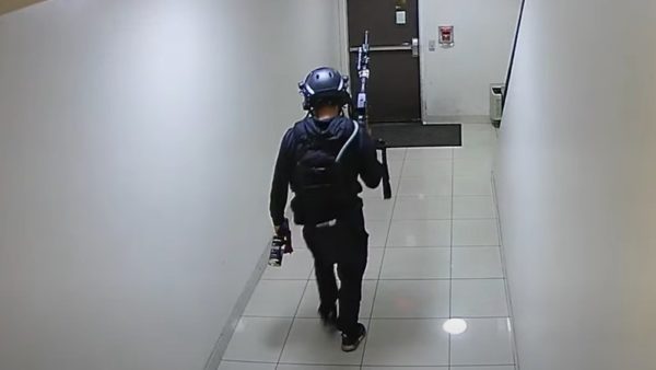 El video (ADVERTENCIA: contenido gráfico) muestra a Williams saliendo del hotel por una puerta lateral e inmediatamente disparando un rifle automático contra vehículos y edificios cercanos.