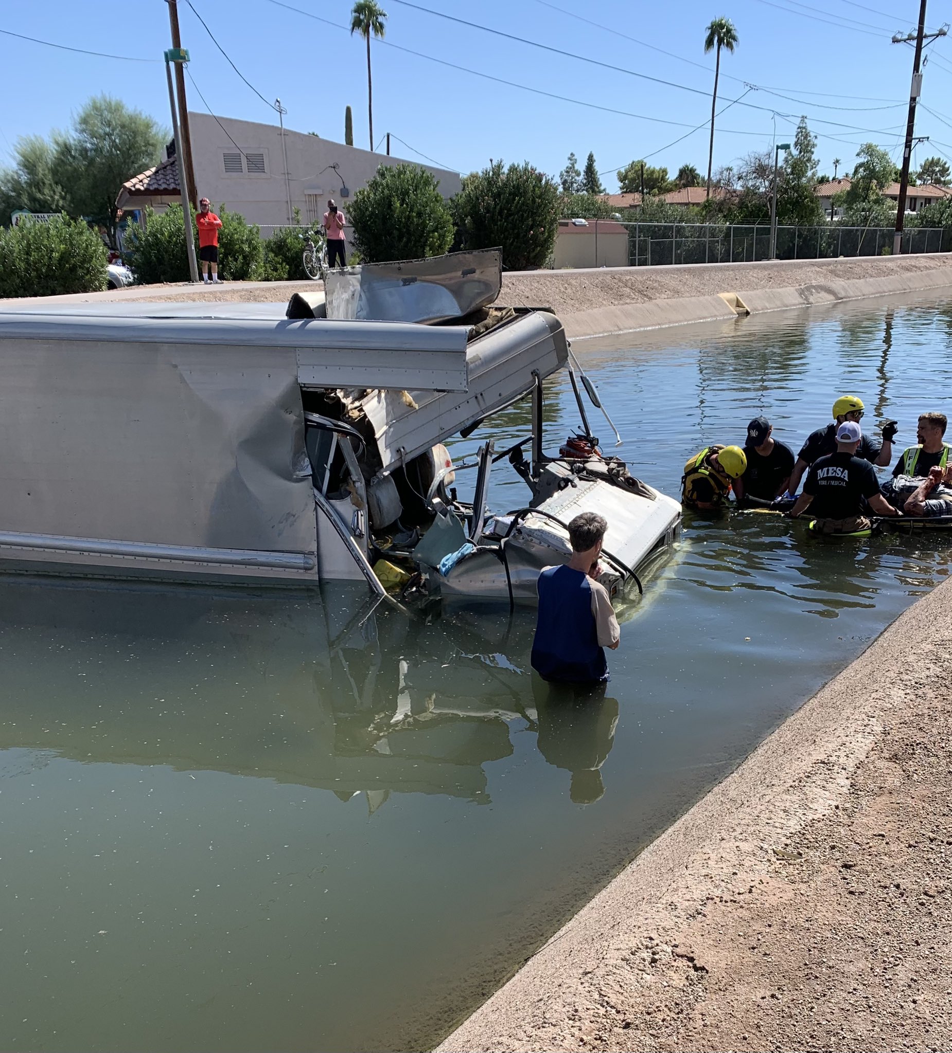 El Departamento de Bomberos de Mesa, los funcionarios de SRP y el Departamento de Policía de Mesa trabajaron juntos para retirar el vehículo del canal, según el comunicado.