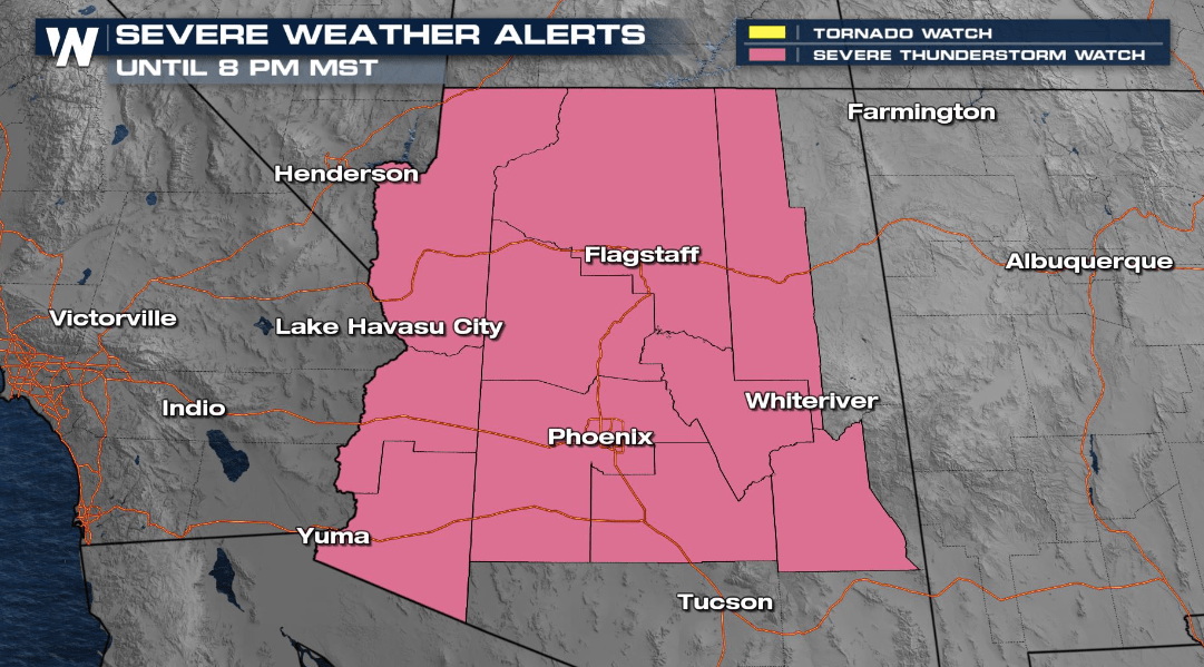 Las tormentas se desarrollaron en las tierras altas el lunes por la mañana y continuaron durante la tarde, desde Lake Havasu City hacia el norte hasta el área de Flagstaff.
