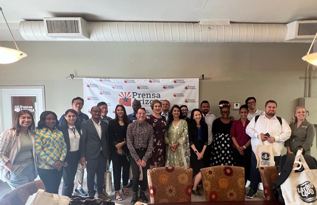El grupo asistió a Prensa Arizona, donde se reunió con Lety Miranda García, Fundadora y CEO, y Will Medina, Director de Marketing. Prensa Arizona es actualmente el periódico en español de propiedad independiente más grande del estado de Arizona. Los delegados incluso pudieron intervenir en el programa diurno de transmisión en vivo de Prensa Arizona.