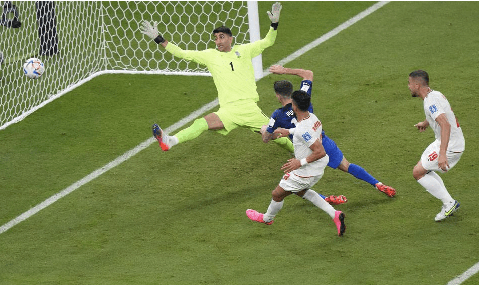 Girando su cuerpo para dejar que la pelota golpeara su pie derecho, Pulisic golpeó la pelota para su gol internacional número 22 y el primero en un juego de la Copa del Mundo. Su impulso lo llevó al portero Alireza Beiranvand, y Pulisic necesitó que lo ayudaran a ponerse de pie antes de volver a entrar.