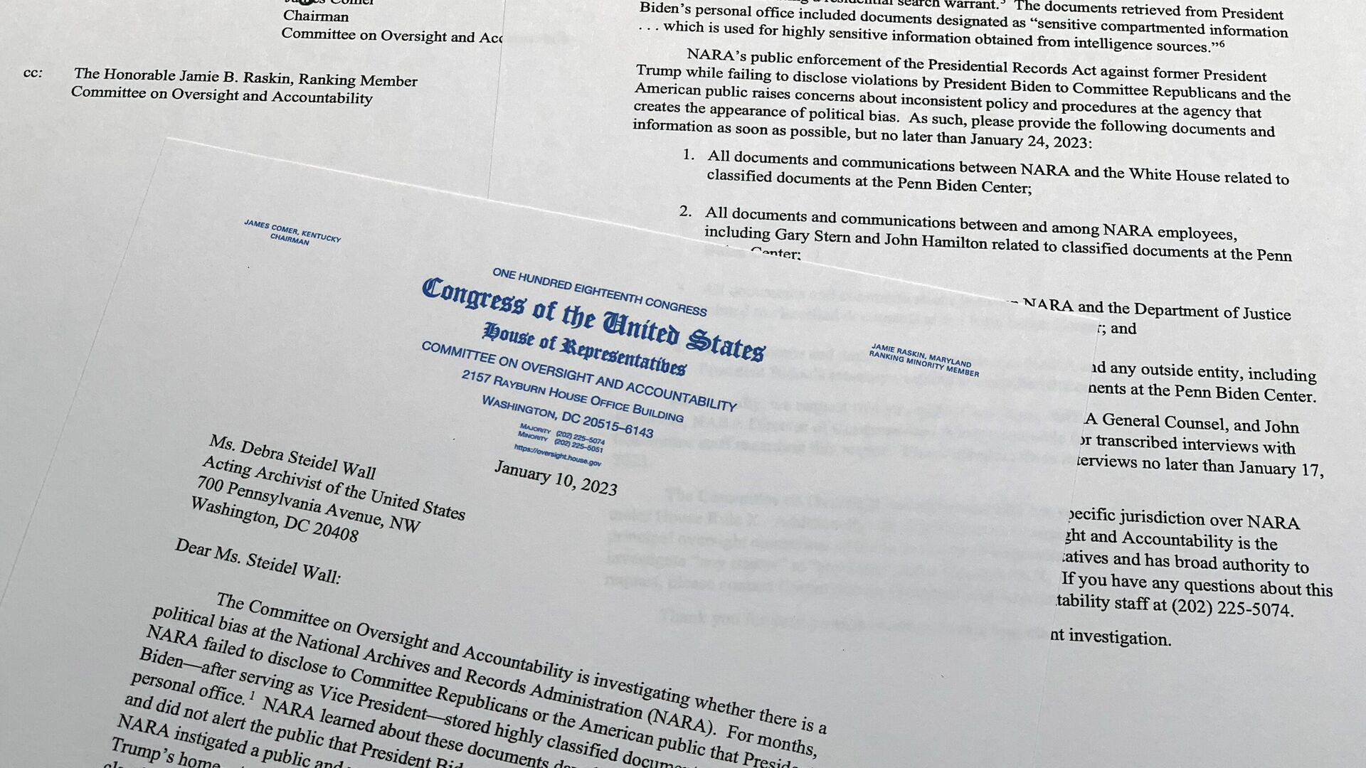 El representante James Comer, el republicano de Kentucky que ahora preside la Comisión de Supervisión de la Cámara, envió cartas a la Oficina del abogado de la Casa Blanca y a los Archivos Nacionales en lo que representa la salva inicial de las investigaciones del Congreso lideradas por los republicanos sobre el manejo de material clasificado por parte de Biden.