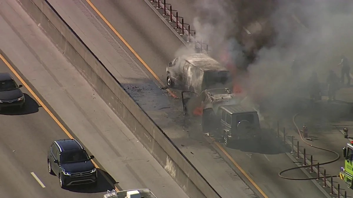 Las imágenes aéreas de Telemundo 51 mostraban a los tres vehículos envueltos en llamas, mientras los bomberos se encontraban trabajando en el área. Los conductores eran desviados a la I-75 o contenidos en la vía, que reportaba alta congestión.