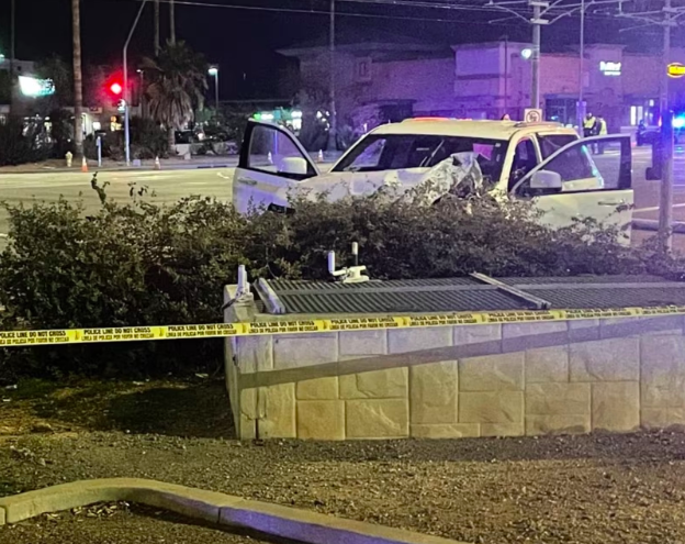 La Policía de Mesa informó que un conductor perdió el control cerca de Main Street y Dobson Road y golpeó un poste de luz, lo que provocó que cayera sobre las vías del tren ligero.