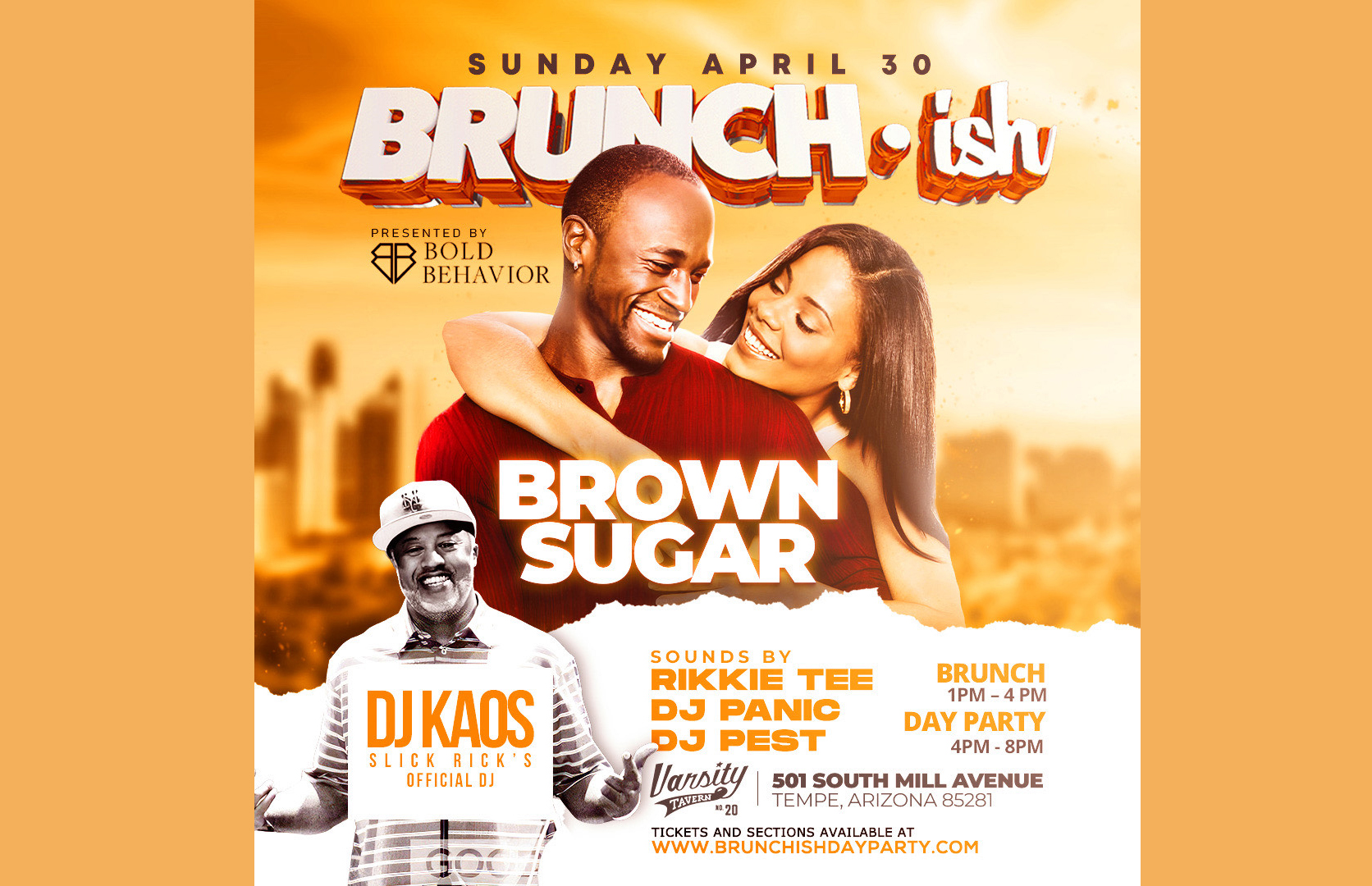 Pero ahora Brunch•ish regresa con sus eventos mensuales el próximo 30 de abril a Varssity Tavern en el 501 S. Mill Ave, en Tempe, con Brown Sugar, An Ode to Hip Hop, con un set en vivo del DJ oficial de Slick Rick, DJ KAOS.